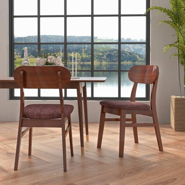 Home > Set of 2 Modern Mid-Century Brown Wood Dining Chair with Padded Linen Seat